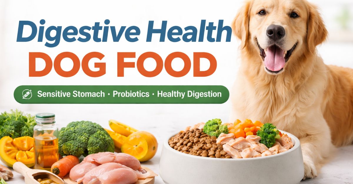 The best digestive health dog food contains easily digestible protein, probiotics, prebiotics, and natural fiber. Always choose high-quality brands with real ingredients.